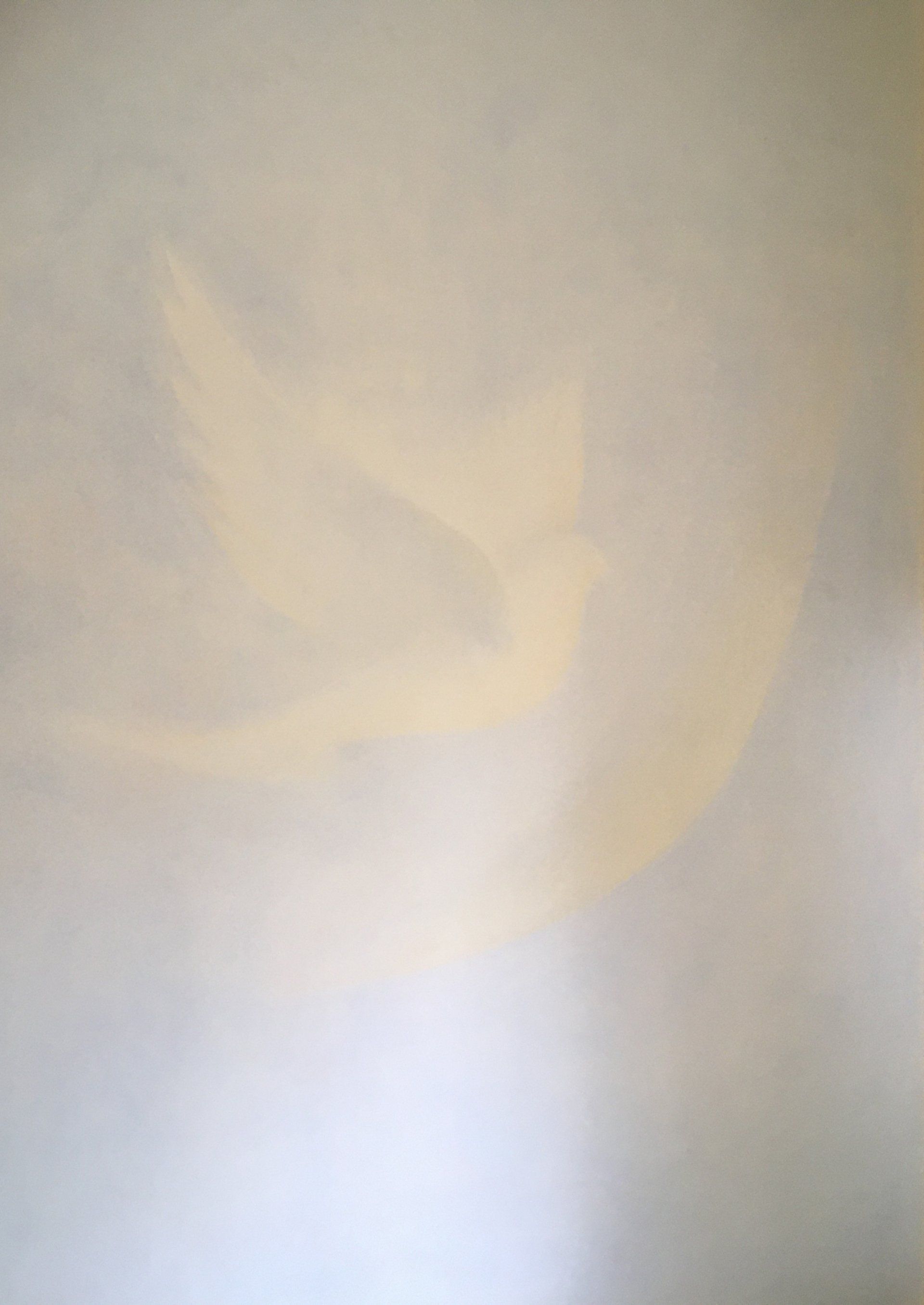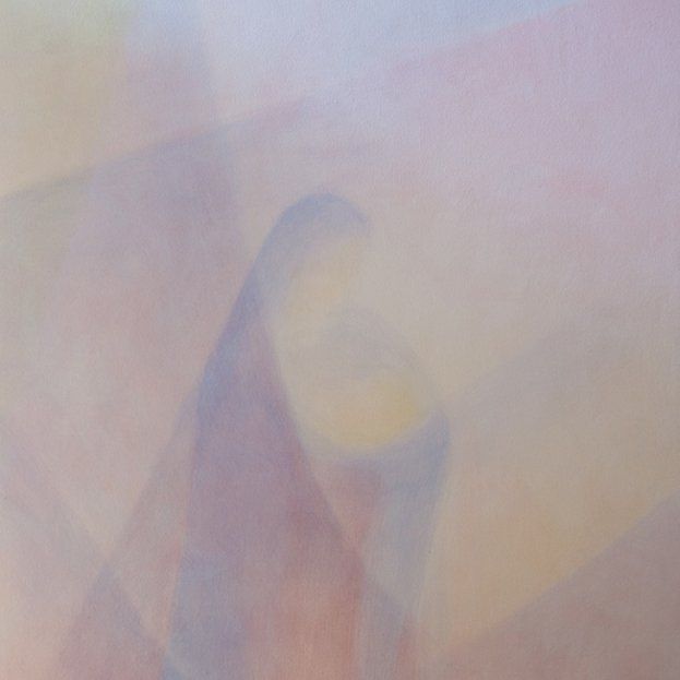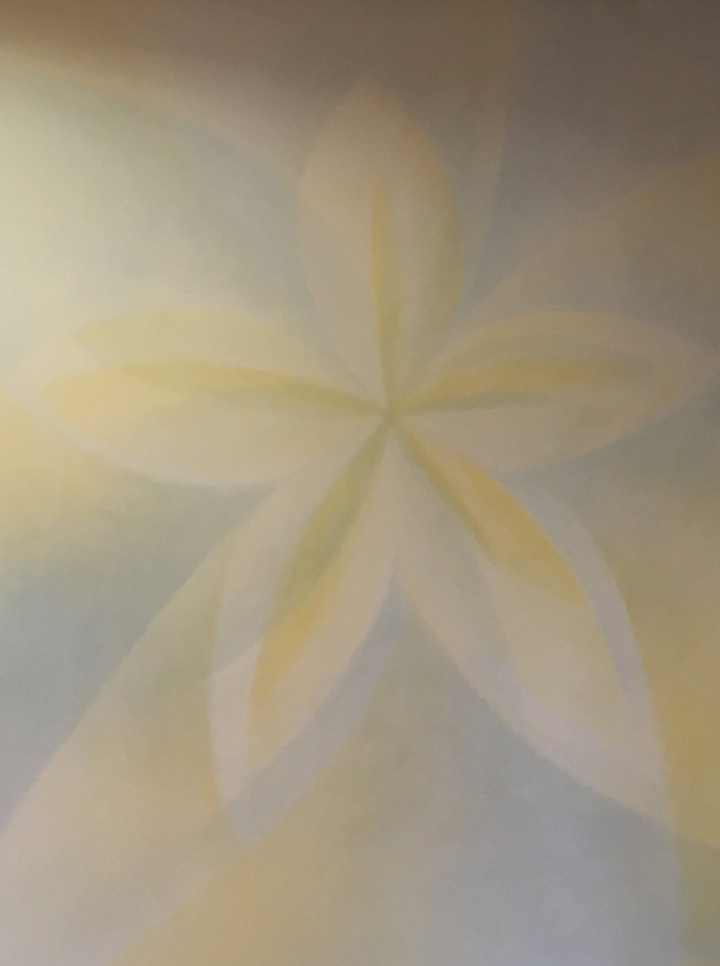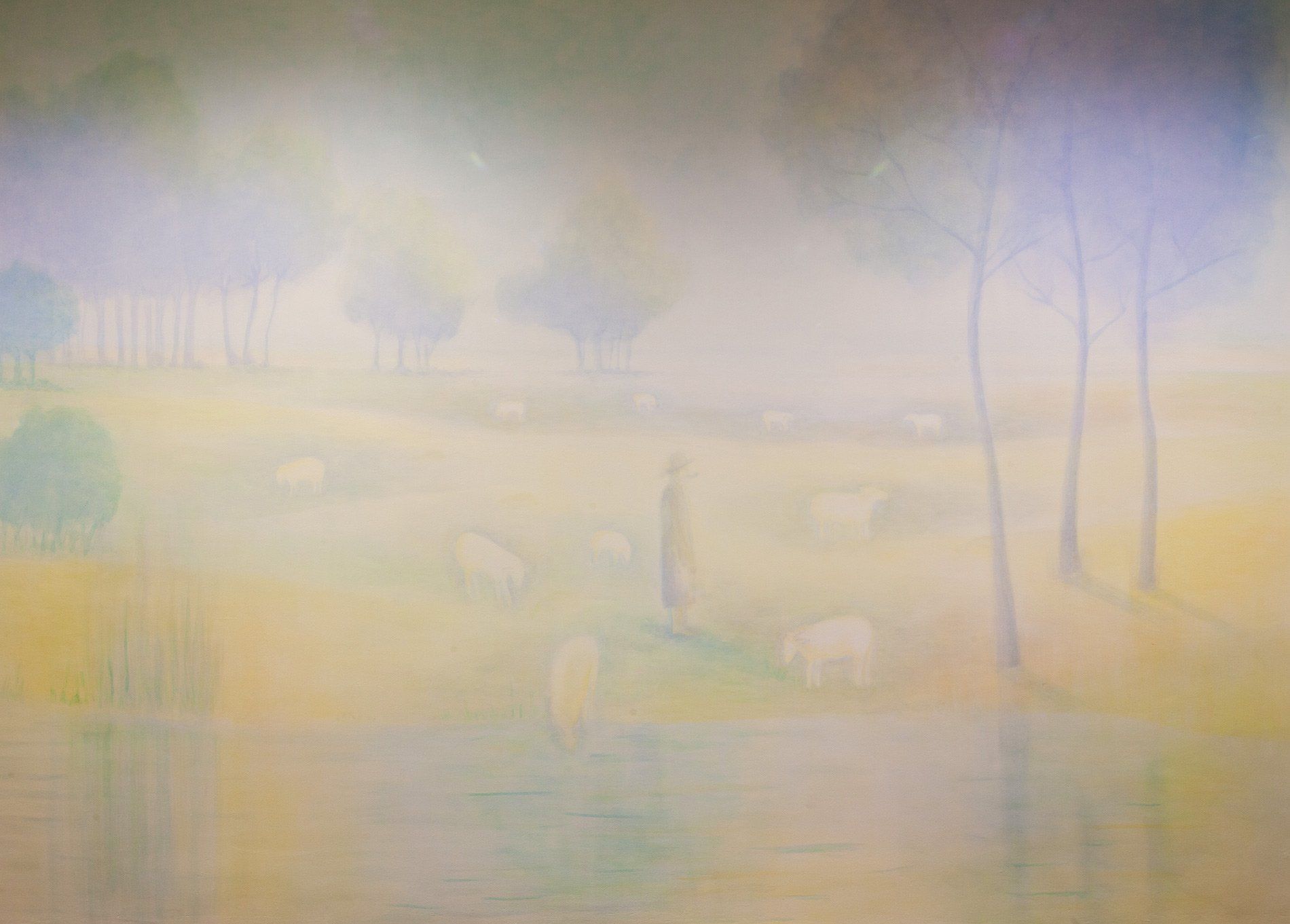 Ook kun je in het sluierwerk nog lang doorwerken aan detaillering, door bijvoorbeeld de onderkant of hoeken heel subtiel wat te verzwaren door iets meer kleur te geven. Door te spelen met het licht en schaduwwerking in de ruimte kun je het natuurlijke karakter van een lichtinval versterken en kijk je welke stukken wat meer kleur verdragen.”